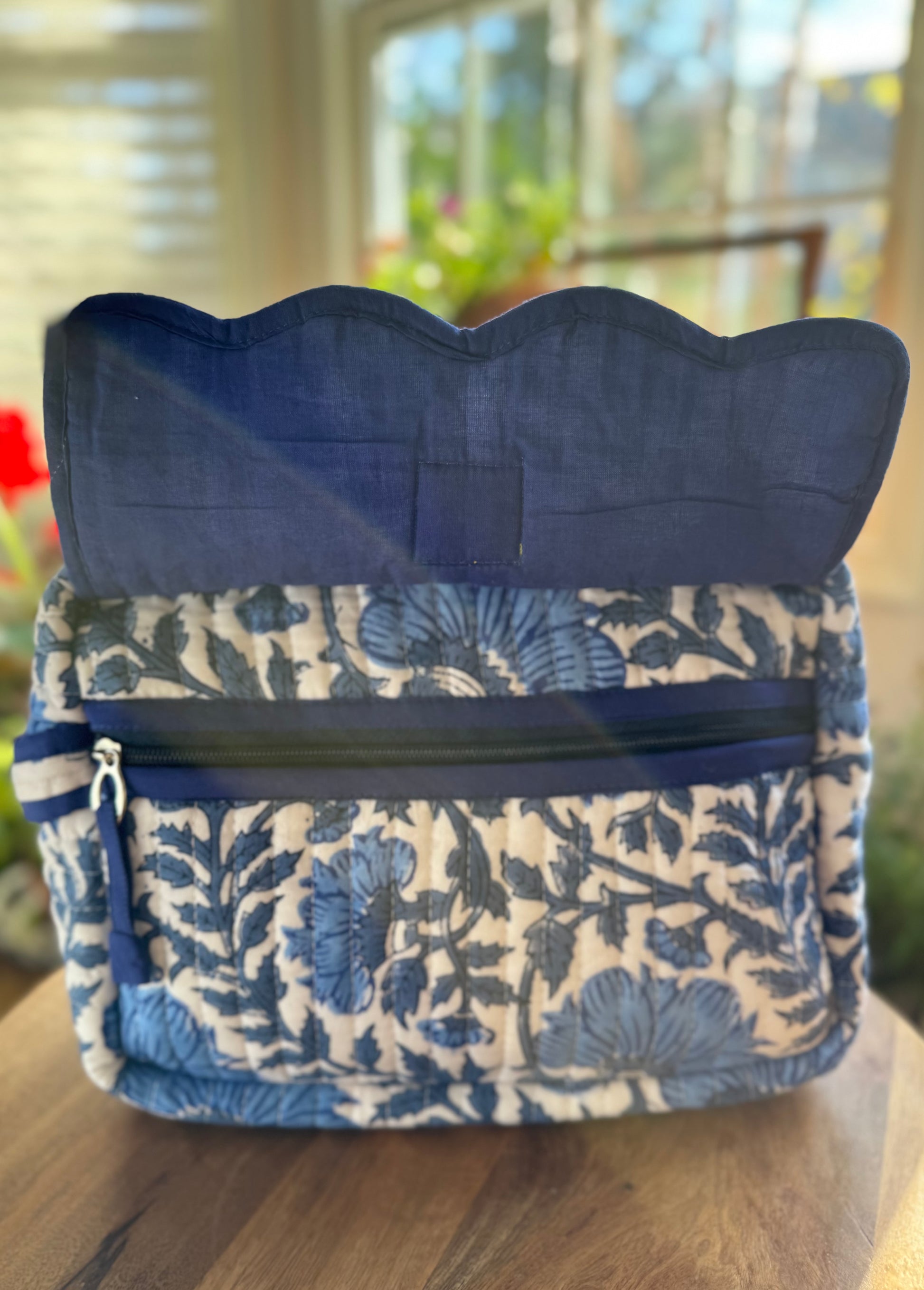 Block print Travel Makeup Bag (Single - C25B) - Blue Vine